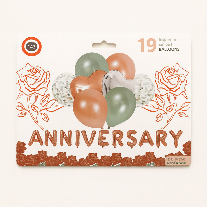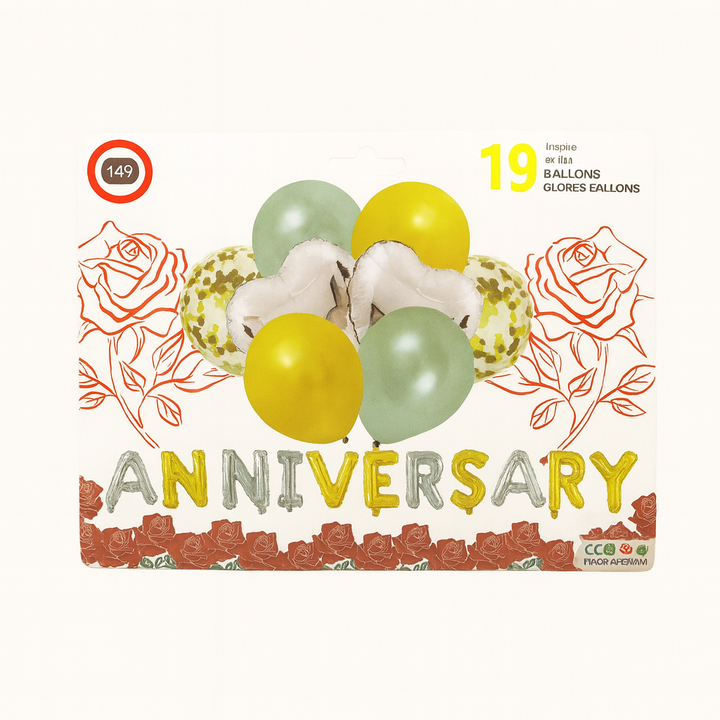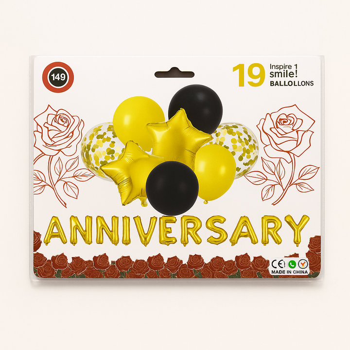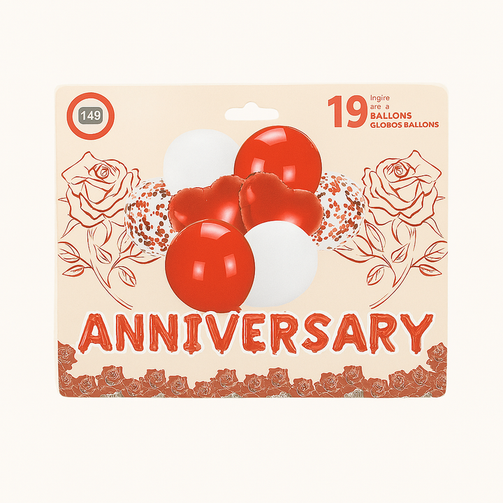 Make your anniversary sparkle with this 19-piece Anniversary Balloon Decoration Set — a complete pack designed to turn any space into a romantic celebration. Featuring high-quality balloons in elegant tones, this set is ideal for surprise dinners, photo setups, or milestone celebrations. Each balloon is durable, easy to inflate, and beautifully complements any theme. Whether it’s your 1st or 25th anniversary, create unforgettable memories filled with color, joy, and love.